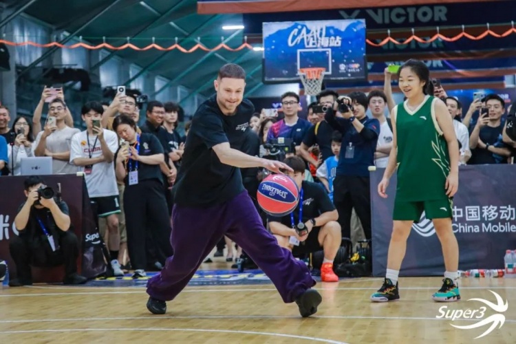 赛间,安踏篮球大使“教授”惊喜突袭现场,与球员展开火热投篮对决,并向球迷亲授招牌动作。活动在欢呼声中圆满落幕,引爆全场观众的篮球激情。