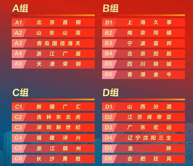 C组的6支球队分别是新疆队、吉林队、深圳队、福建队、浙江队和NBL长沙勇胜队。