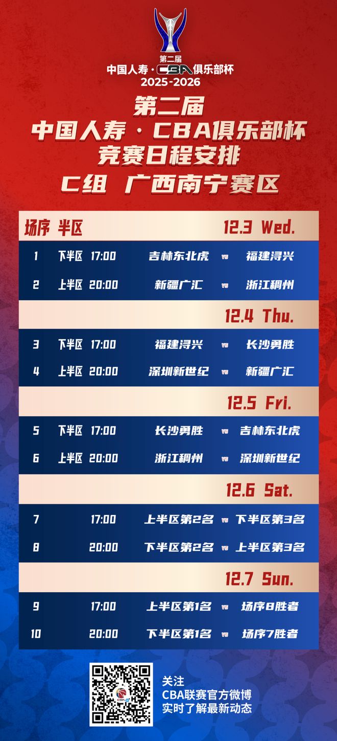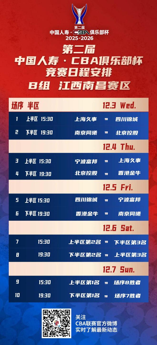 随着赛区结果揭晓, 第二届中国人寿·CBA俱乐部杯赛程也紧随其后公布。