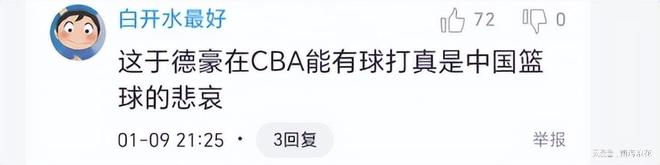 说实话,如果昨晚不是缺席了后卫高诗岩,于德豪根本就得不到这么多时间。于德豪本赛季断崖式下滑,从上季的场均6.9分下滑到如今的0.9分,在11场比赛中,有8场0得分,成为一个混子球员。球迷说,“昨晚于德豪险些成全了北京队”、“这于德豪在CBA能有球打真是中国篮球的悲哀”、“于德豪这种水平都能进国家队,中国男篮的水平可一斑。”、“于德豪差点成了北京的功臣”、“于德豪,你带着鲍威尔一起滚吧”。这样的废才确实是不宜留在球队了,诸位,你们说呢?