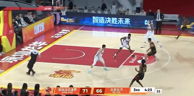 接着,王浩然还持球直面北汽内线,在周琦头上完成突破上篮。