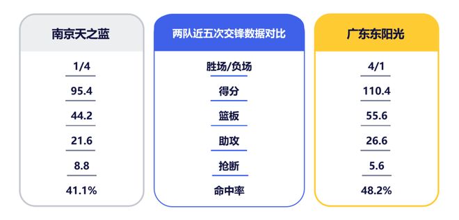 本赛季首回合交手,广东队在主场遭遇顽强阻击,比分领先情况下一度因松懈被对手在郭昊文的带领下反超,最终双方缠斗至加时才决出胜负。此番客场与南京队进行二番战,近期遭遇四连败的对手势必将放手一搏,力争用一场胜利止住颓势,广东队仍需高度重视,做好拉锯战准备。