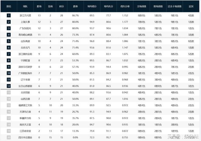CBA积分榜