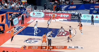 随后大鲨鱼外援古德温开始发力,大号三分命中吹响球队反攻的号角,古德温这一节4投全中,独砍11分。在他的带领下,上海男篮打出一个11比0,反超比分。而新疆男篮第二节19次出手仅仅投进5球。大鲨鱼单节打出25比16,在半场结束时以38比33领先5分。