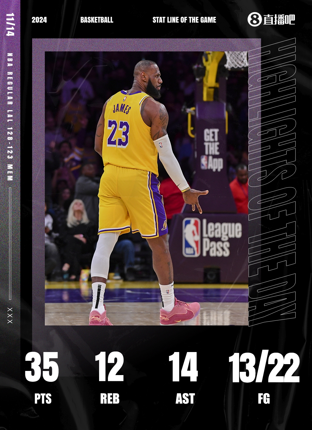 11月14日报道 NBA常规赛,湖人主场128-123复仇灰熊。
