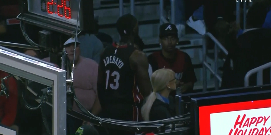 12月21日报道 热火主场迎战魔术的比赛正在进行,热火球员阿德巴约在抢篮板时被打到头部,回了更衣室。