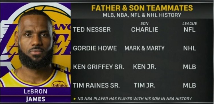 据统计,这是NBA历史首次父子同台,填补了四大联盟中最后一个父子同台的空白(此前NFL、NHL、MLB都有过父子同台的场景)。