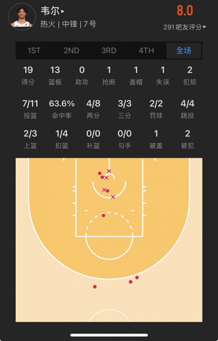 热火15号秀 克雷尔-韦尔 登场32.6分钟