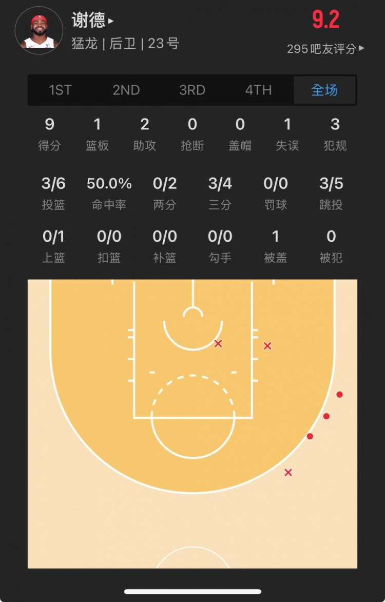 猛龙45号秀 贾马尔-谢德 登场17.8分钟