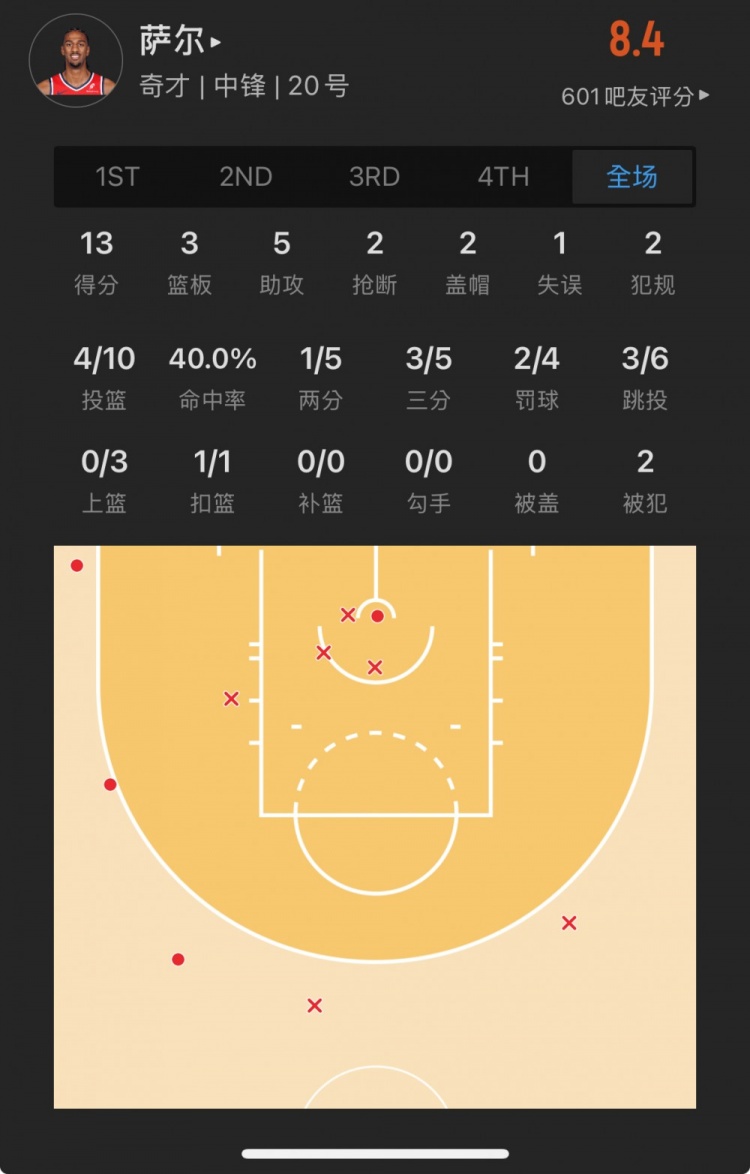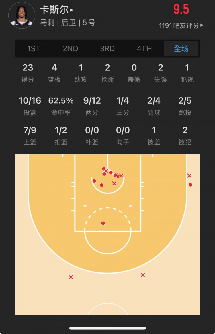 马刺4号秀 斯蒂芬-卡斯尔 登场35.7分钟