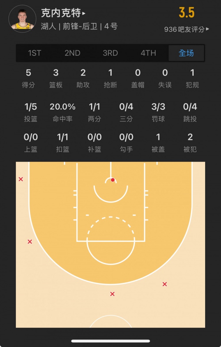 湖人17号秀 道尔顿-克内克特 登场13.8分钟