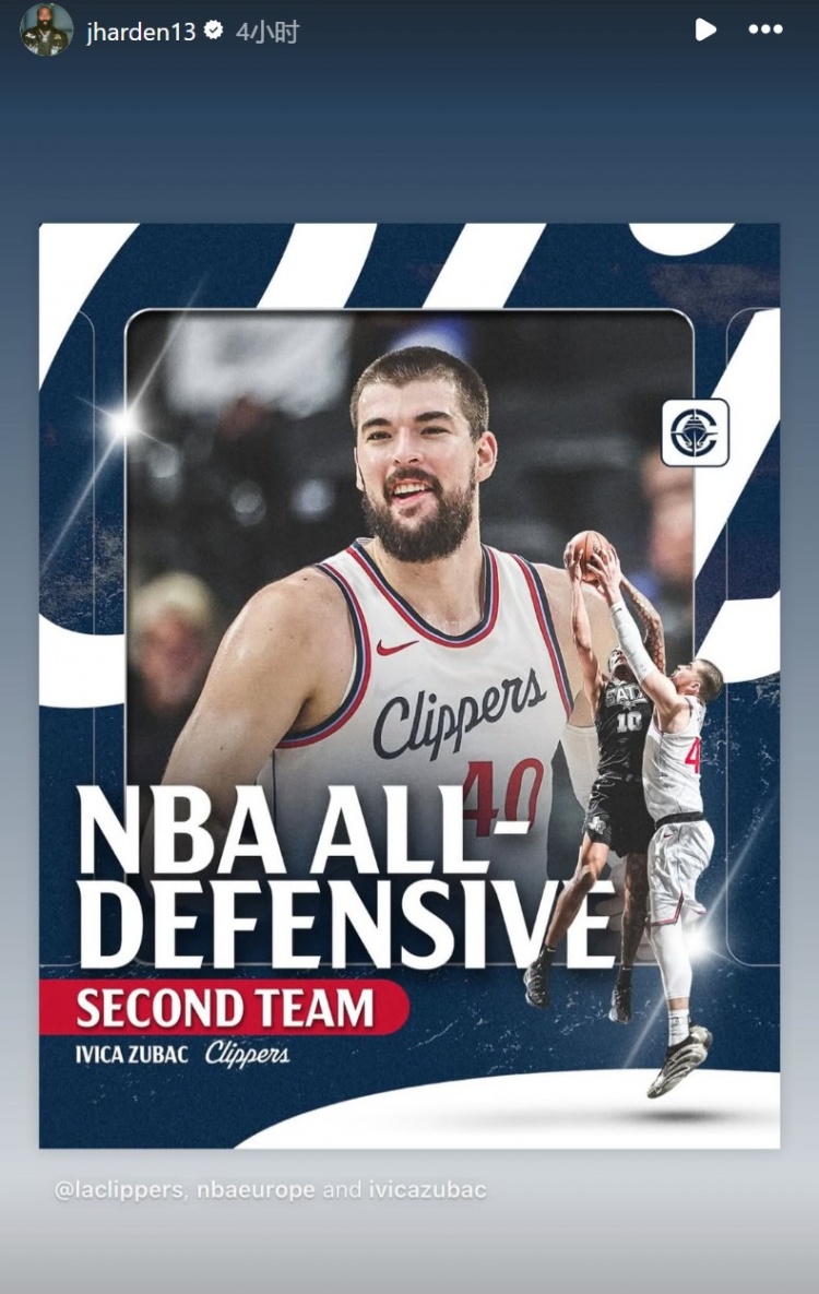 5月23日报道 NBA官方公布了2024-25赛季最佳防守阵容,快船中锋祖巴茨入选二防。