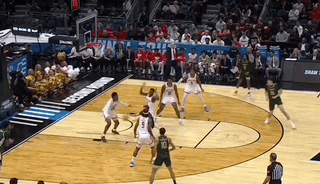 马里兰大学的教练还带奎因研究掘金队的录像,意图让他学习约基奇的打法,还模仿约老师的风格设计了一系列围绕奎因的战术。队友们甚至给他起了“黑宝约基奇(black baby Jokic)”的外号,奎因也确实有所收获,他偶尔能送出这种惊艳的传球,但综合来看,一个场均1.9助攻2.4失误的球员,还蹭不上约基奇的名号,也和他的偶像詹姆斯相去甚远。