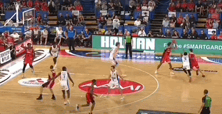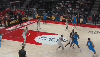 这就很好解释他的技术特点——身体天赋横溢,技术却非常粗糙。在欧洲联赛的一年里,他场均5+5,如野兽一般飞天遁地,完全不投三分,罚球差,犯规多,几乎就是五号位的樱木花道。天赋和短板都闪闪发亮,可以像前锋一样风驰电掣单手劈扣,运起球来却像个门外汉摇摇欲坠。