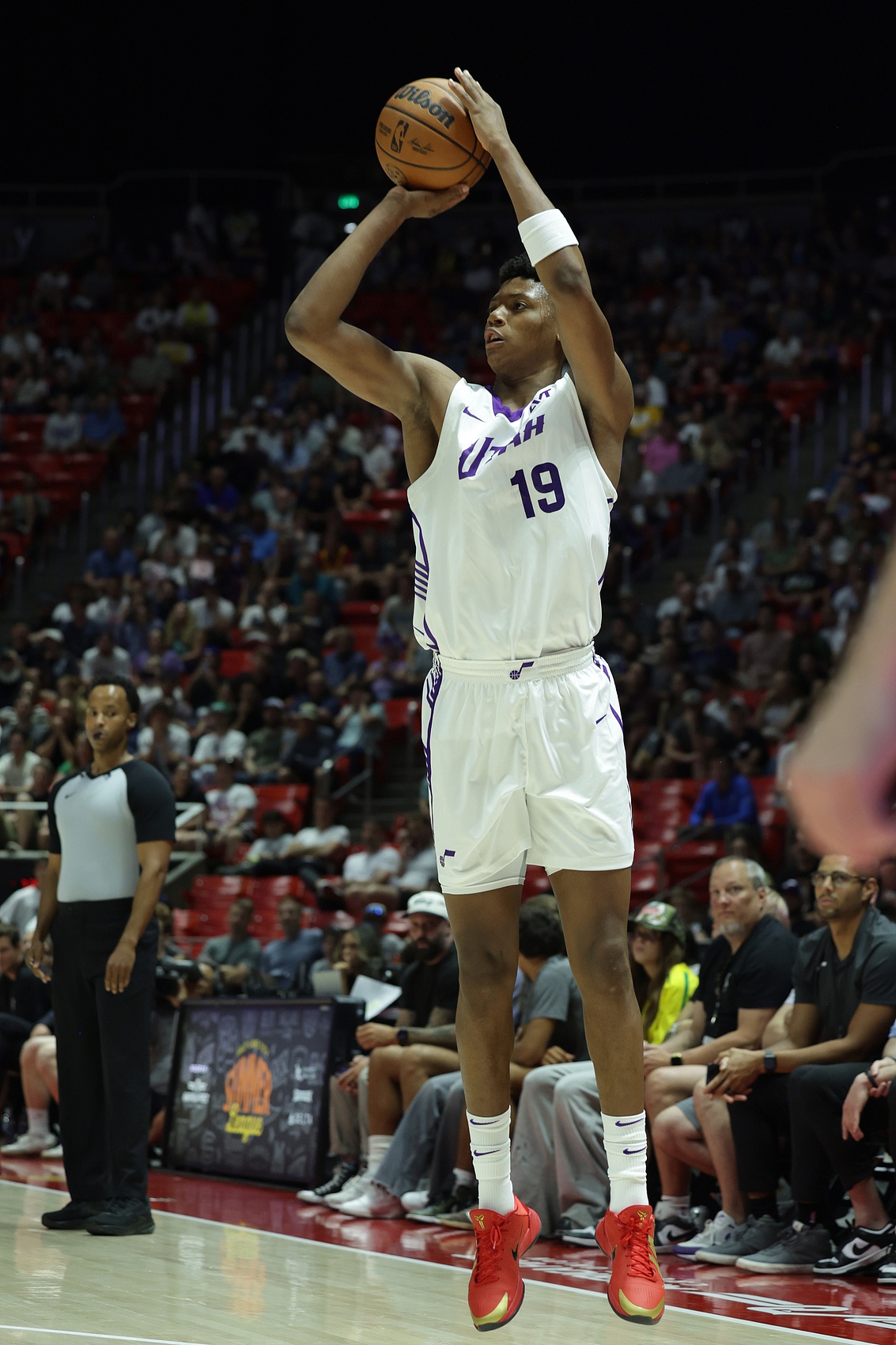 爵士5号秀埃斯-贝利,在球权不够多的前提下,利用自己的天赋频频争抢前场板机会,有金鸡独立,有底角的不沉球三分,有空接暴扣,有前板炸扣,表现相当抢眼。