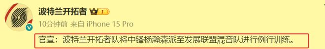 什么意思呢?就是杨瀚森从现在起,离开开拓者队,转而到开拓者队下属的混音队打球。