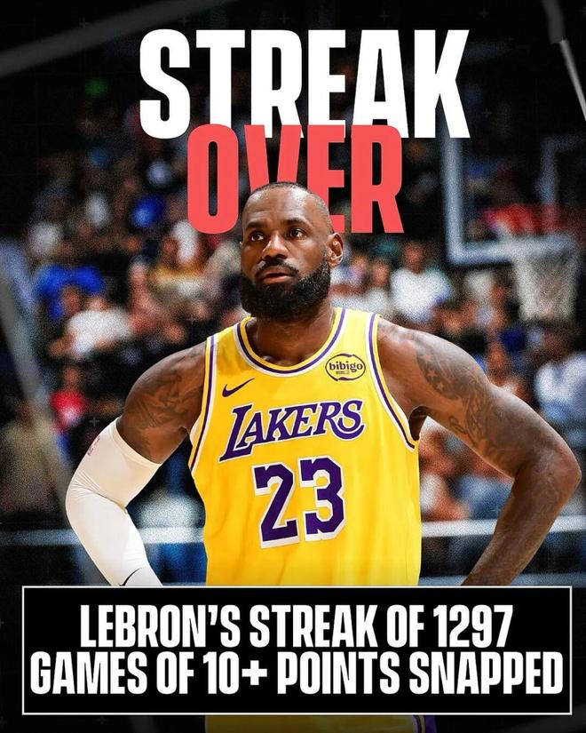 上一场对阵太阳,詹姆斯三节结束只得到6分,第四节剩下6分钟前,一记后撤步三分才将得分提高到10分,由于当时湖人落后太多,有不少人质疑詹姆斯是为了延续纪录”刷分”。