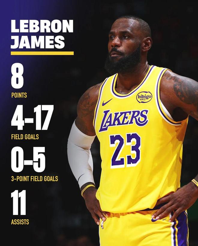 需要说的是,虽然个人进攻状态不好,但是本场比赛詹姆斯还送出了11次助攻,而且没有出现1次失误,本赛季目前,他场均14.0分生涯最低,但是能送出7.8次助攻,只有1.8次失误。
