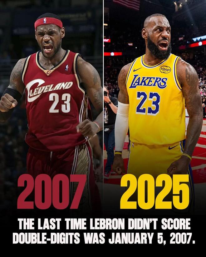 是的,詹姆斯的连续1297场得分上双纪录在今天终结了,他上一次得分不上双还要回到2007年,现役有99%的球员还没有进入NBA。