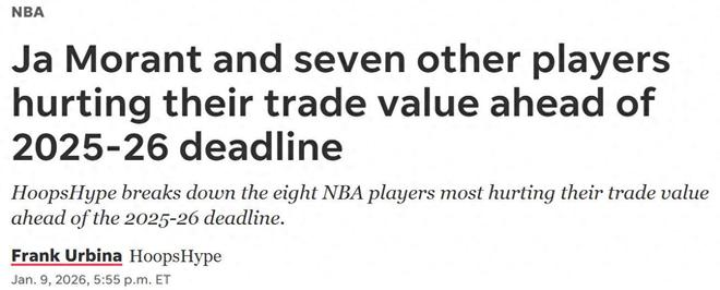 砸手里了!在距离交易截止日不足一个月之际,美媒《hoopshype》晒出本季交易价值暴跌的8大球星,其中勇士追梦入选,独行侠浓眉排第一。