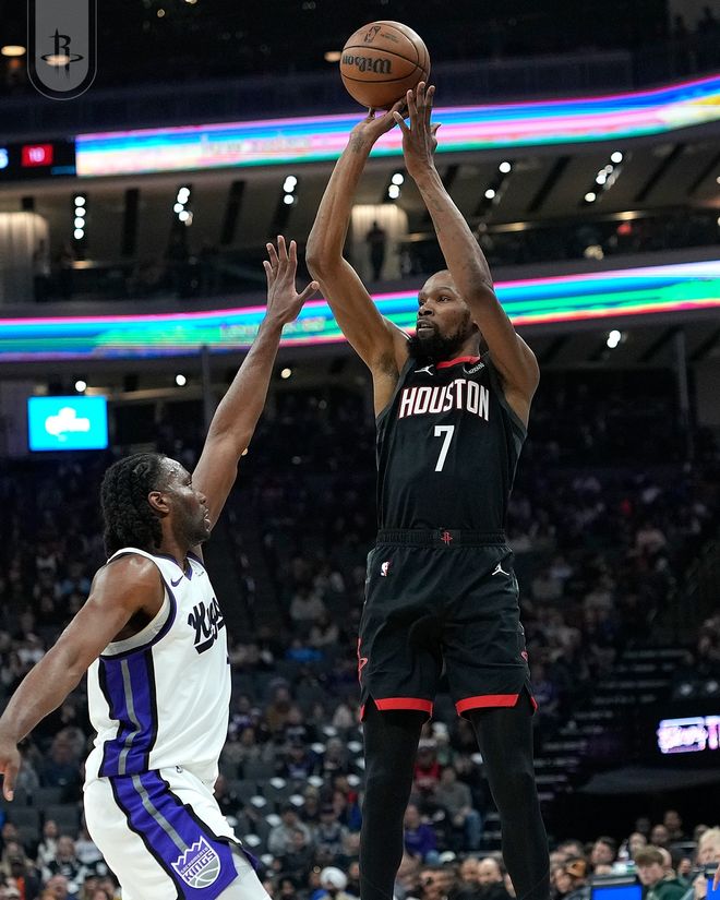 国王队的德罗赞得到22分和6次助攻,拉文得到18分,威少得到15分、6个篮板和10次助攻,蒙克得到15分和4个篮板,雷纳德得到12分和11个篮板,阿丘瓦得到10分和7个篮板,卡德维尔得到9分和10个篮板。火箭队的汤普森得到31分、13个篮板和6次助攻,杜兰特得到23分、4个篮板和6次助攻,申京得到19分和9个篮板,史密斯得到9分和6个篮板。