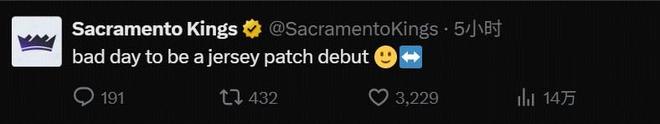 赛后,国王官方更新社媒:对于首次穿着徽章球衣打球的人来说,今天真是糟糕的一天呀。