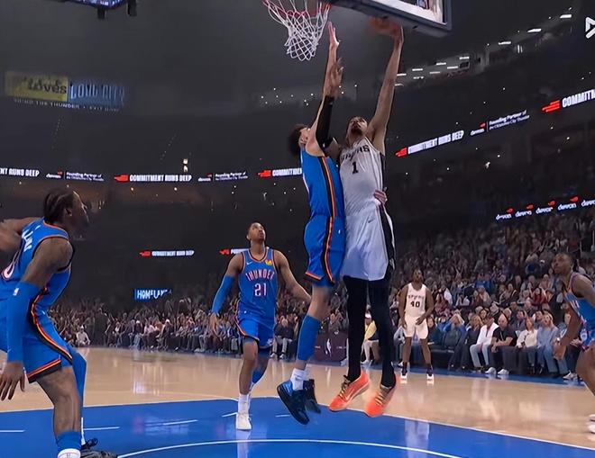 次节回来,文班亚马低位扛着切特,转身抛投丝滑再打进,真是硬气。紧接着,文班亚马强攻欲隔扣切特,反遭对手大帽拍飞在地,回放这个球却有犯规嫌疑,推人了。下一回合切特持球,文班直接将其推出底线,裁判立即响哨。文班真生气了,切特三分线外投篮,文班补防送上遮天大帽。尚帕尼连续投进2记三分,马刺再次追平雷霆。文班跳起抢板,亚历山大倒地夹住其脚导致摔倒,这个动作太危险了。切特小打大造成尚帕尼犯规,半场战罢,雷霆55-52领先马刺3分。