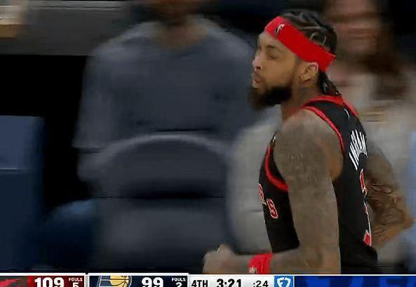 中场休息回来,猛龙连续两节单节得分不足30分,步行者连续两节单节得分30分。步行者率先一波13-7攻势追到差13分,猛龙内外开花很快重新扩大83-64领先优势,猛龙之后继续扩大94-74领先优势。步行者连追4分,猛龙单节27-30被追回3分,三节结束猛龙94-78领先步行者。前三节比赛,巴恩斯20+5+12与英格拉姆22分,引领猛龙5人得分上双;西亚卡姆4记三分22+7与沃克3记三分11分。