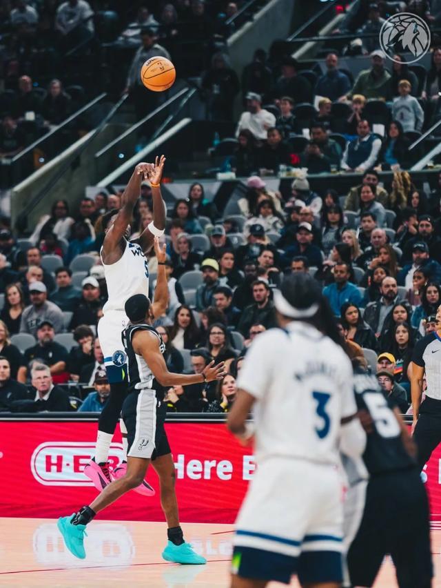 因为文班第二节的爆发,马刺一度领先森林狼25分。森林狼可谓是风雨交加,戈贝尔不打,里德伤退,爱德华兹的脚伤复发在比赛里一瘸一拐的。在比赛里,森林狼距离放弃可能就差一个契机,然而华子直到比赛结束也没挥出白旗。
