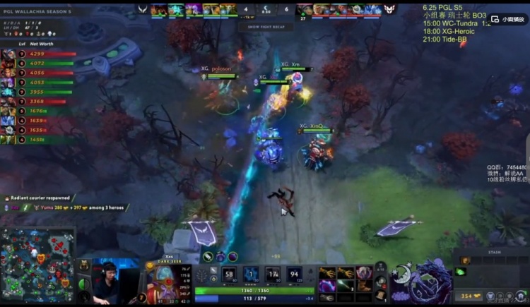 天辉XG:Ame末日使者、XinQ暗影萨满、Xm蓝猫、poloson先知、Xxs黑暗贤者