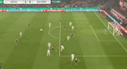 此役拜仁面对主场作战的科隆,在强大的实力面前,主队只能横摆大巴车,把防守反击战术进行到底,别无他法。比赛第30分钟,科隆利用角球机会由阿赫高高跃起头球破门,科隆1-0拜仁,主队意外领先。
