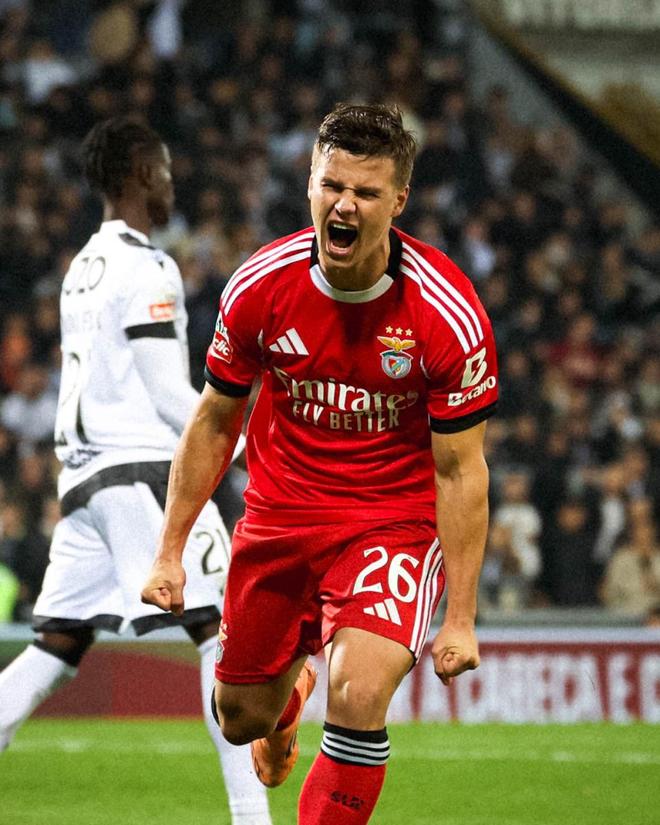 易边再战,比赛仅仅开打8分钟,本菲卡就打破僵局。客队开出角球,托马斯-阿劳霍在人群中高高跃起甩头将皮球顶入远角,本菲卡1-0领先,取得了下半场梦幻般开局。
