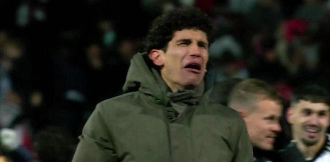 这位曾效力于皇家马德里的后卫,如今身披阿尔瓦塞特的战袍。当队友们都在尽情庆祝胜利时,镜头捕捉到了他泪流满面、情绪完全失控的模样。