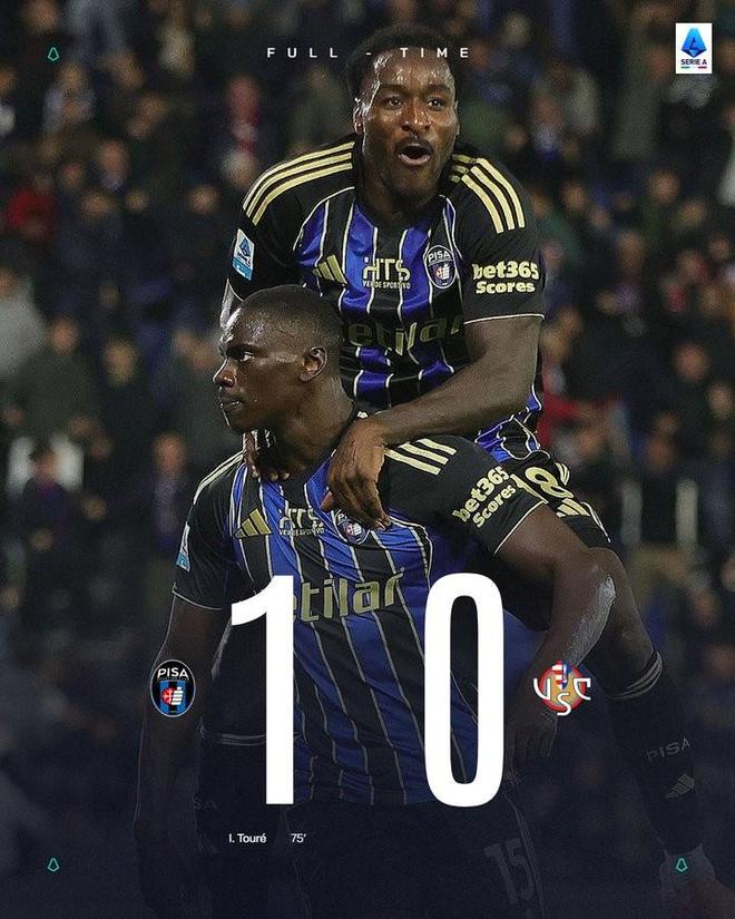 赛后根据统计,本场比赛的胜利不仅让比萨终结了开季意甲前10轮不胜的尴尬纪录,同时这也是他们自1991年5月12日主场1-0击败巴里以来,时隔34年半再次在意甲联赛中品尝到胜利的滋味。