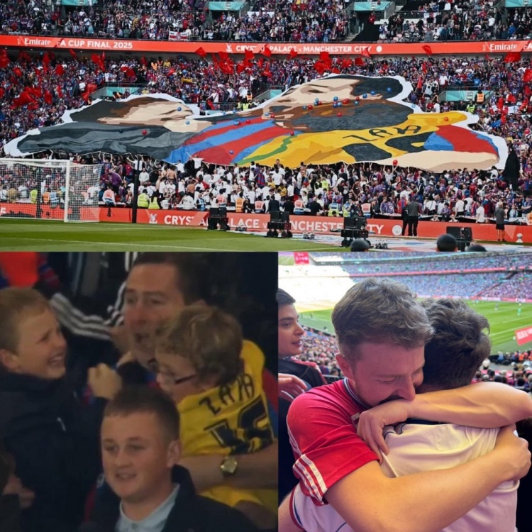 水晶宫对阵曼城的足总杯决赛,当纳森和多米尼克兄弟俩走进球场,惊喜地发现,看台上的TIFO,是当年他们俩和父亲一起庆祝进球的场景。
