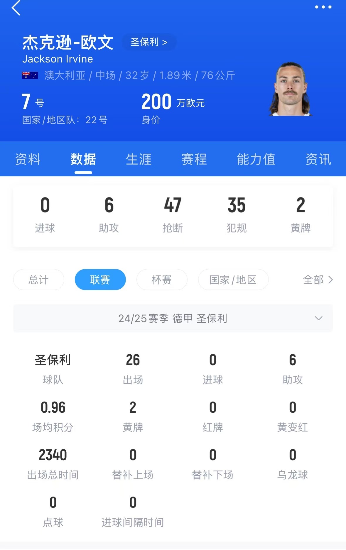 现年32岁的杰克逊-欧文目前效力于德甲圣保利,是球队的主力和队长,本赛季联赛出场26次,并有6次助攻,目前德转身价200万欧元。