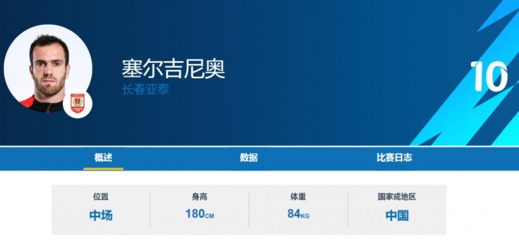 但在塞尔吉尼奥个人的资料当中,中足联官网尚未及时更新,目前显示的依然是他上赛季的资料。