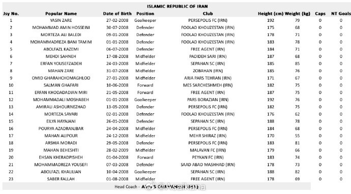 前锋:7-布尼亚明·阿不都沙拉木(恒大足校)、9-魏祥鑫(梅州客家)、10-艾比布拉·努尔阿吉(成都蓉城)、16-杨黔东(恒大足校)、17-魏子健(浙江)、18-李翔(鲁能足校)