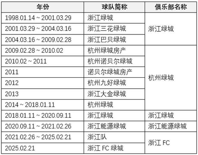 - 杭州日报.告别“绿城”!更名为“浙江职业足球俱乐部”[Z/OL].百度.(2021.02.26).https://baijiahao.baidu.com/s?id=1692725686047377751&wfr=spider&for=pc.